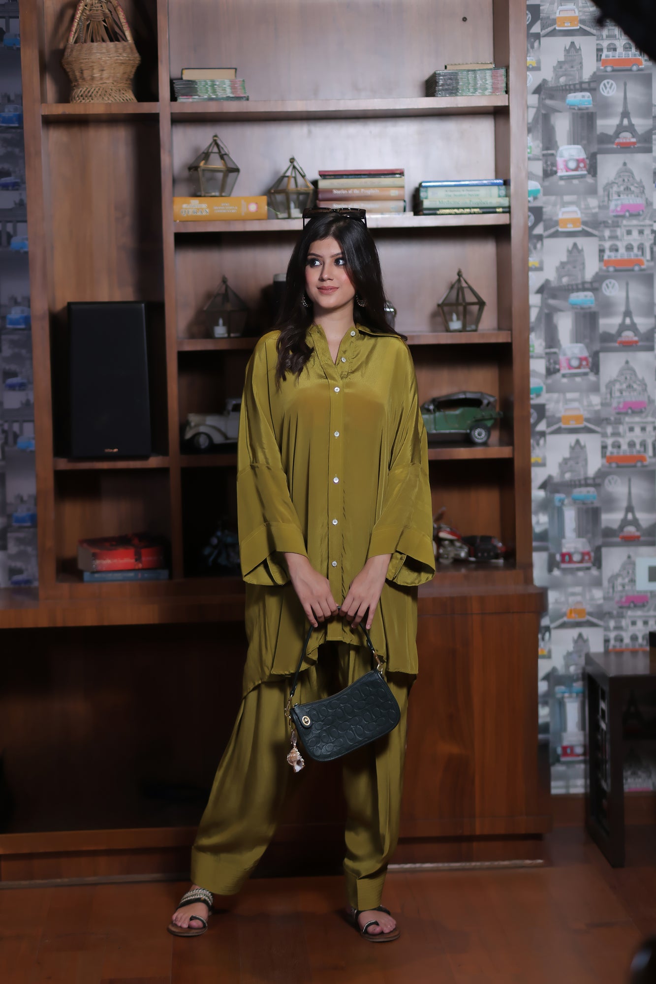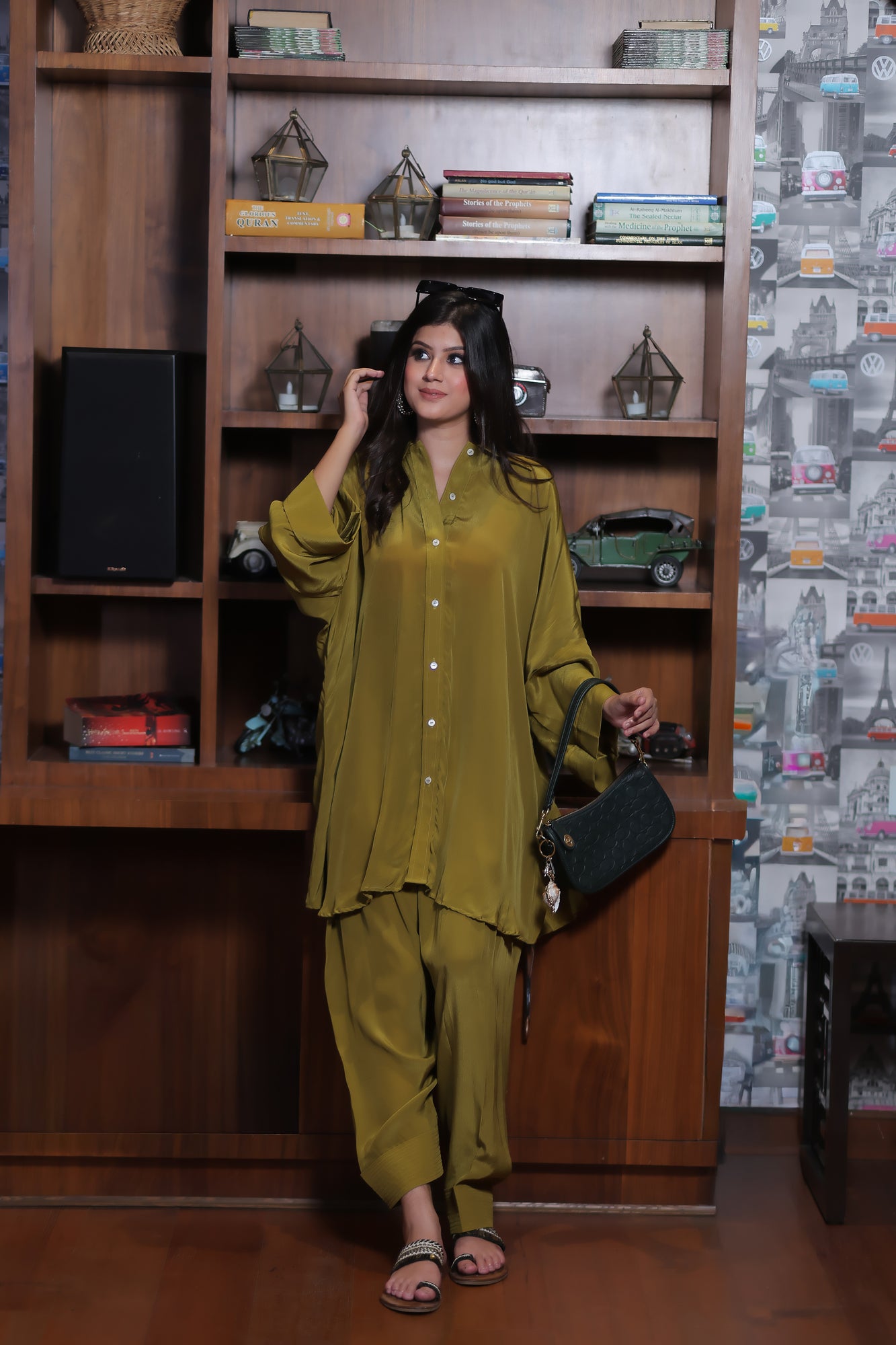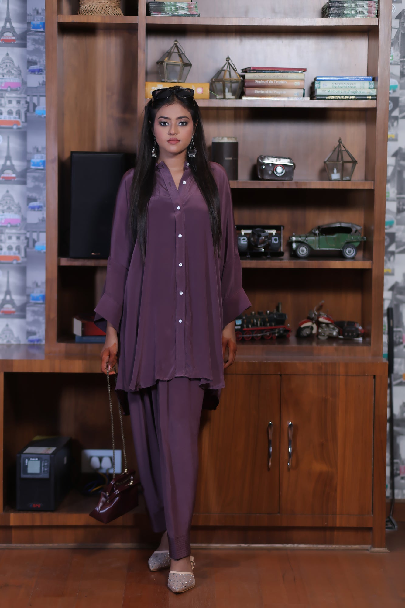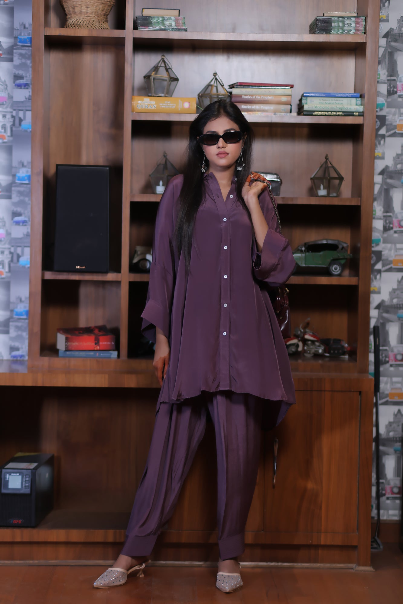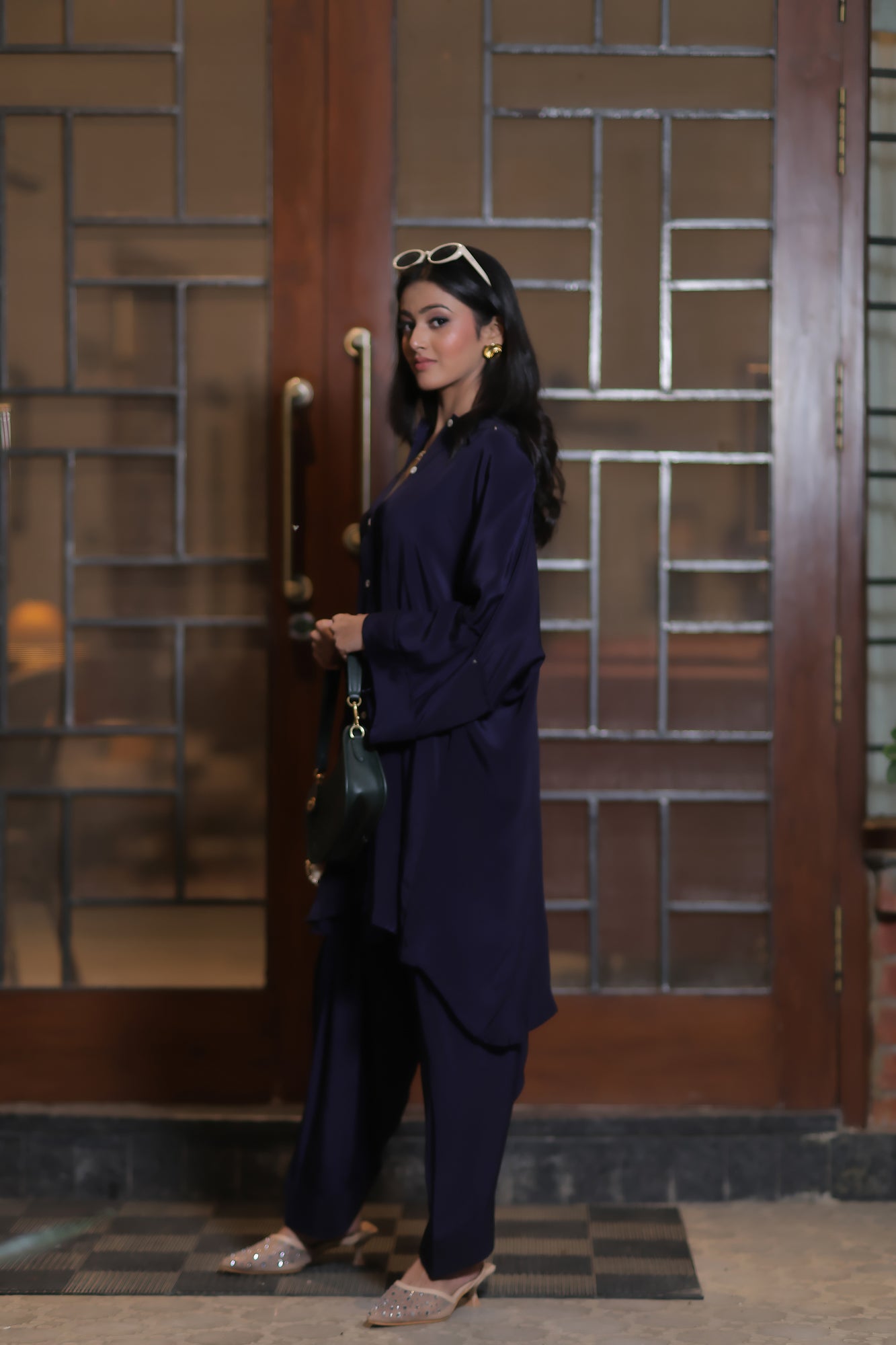 The Xyra Set is crafted in luxe bamboo crepe, offering an effortless blend of comfort and sophistication. The co-ord features a collared button-down shirt detailed with elegant shell buttons and a relaxed, loose fit silhouette—perfect for all-day ease. Paired with a classic shalwar featuring a full elasticated waist, the set brings a modern twist to everyday dressing while keeping it timelessly chic. A versatile pick that transitions seamlessly from day brunches to evening outings — minimal, refined, and undeniably stylish.